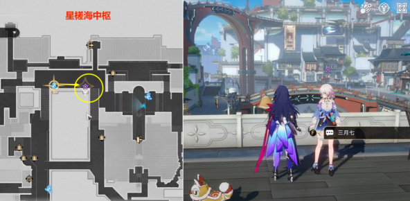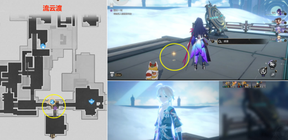 4.进入副本开始对话完后,需要自流云渡中调查线索,在前面广场这里,调查下图3处位置。