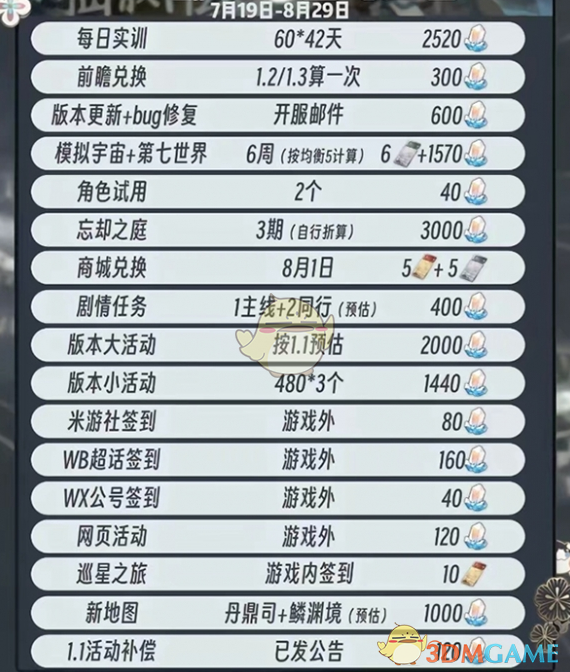 4、参与模拟宇宙第七世界,会有6周的时间,至少能领到1570星穹和6张普票。