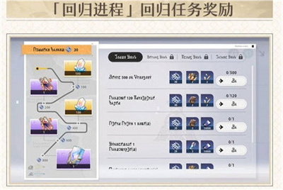 回归的时候将会有进度条,玩家完成的任务越多,就可以获得更多的奖励。