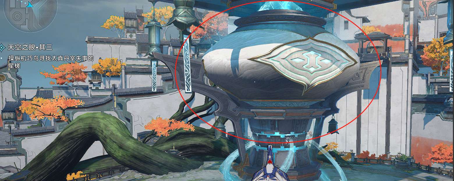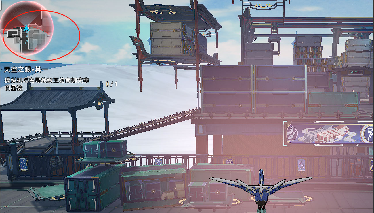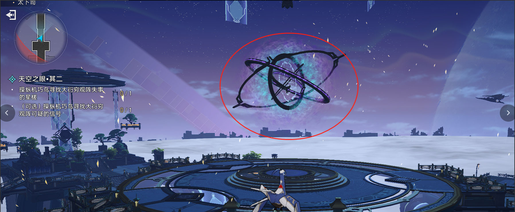 进入操纵视角,先扫描第一个和第二个星槎,然后来到第三个区域,穹观镇这里