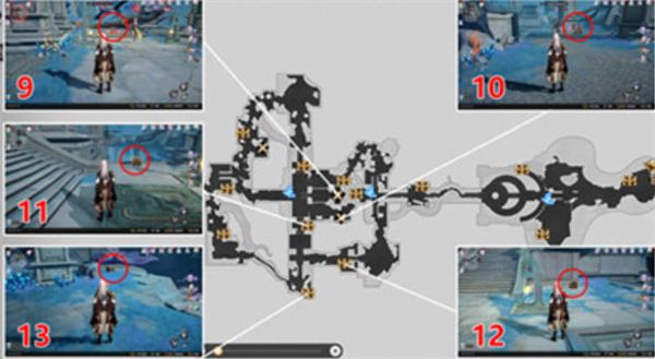 4:接着是第九个宝箱至第十三个宝箱的位置,如图所示;