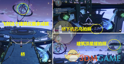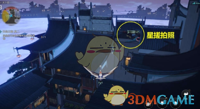 6、最后来到机巧鸟初始位置,给右前方建筑顶部星搓拍照。