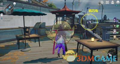 2、接着和梓桥对完话,根据提示前往下图位置修理机巧鸟。