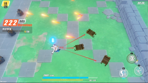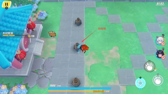 ✦ 完成方式:在挑战过程中,拾取敌人掉落的木材,与基座交互,建造三个箭塔。