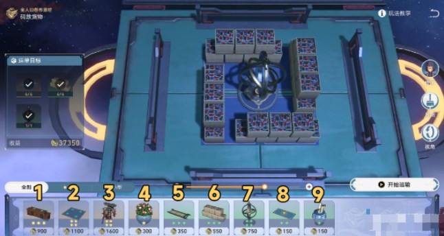 按照下图的编号,依次点击,2号 货物 4 次,6号货物 2 次,第二个6号货物需要旋转一下,7号货物 1 次,6号货物 2 次。