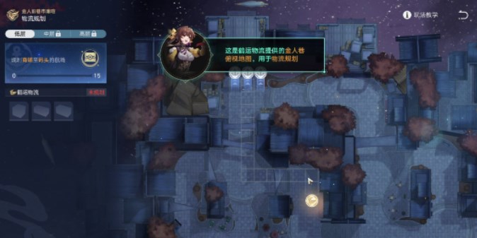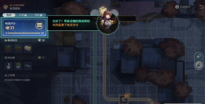 2、完成要求后,依据提示前往鹤运物流(金人巷分部),依照提示完成第一家店铺的物流规划: