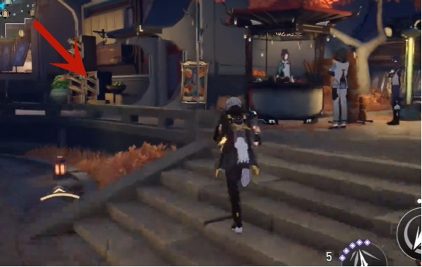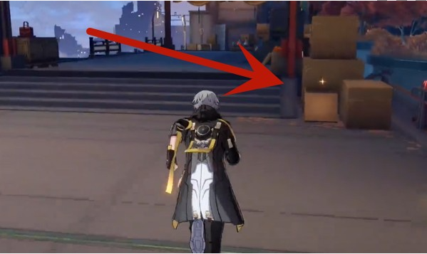 3、走到图片中的路口处,查看箱子。