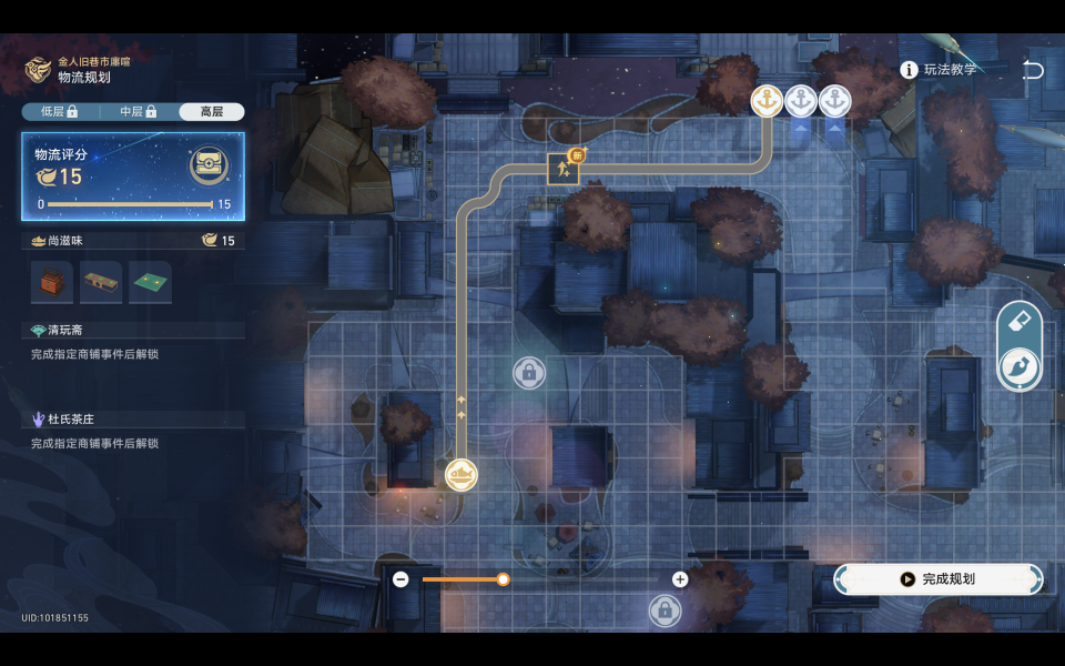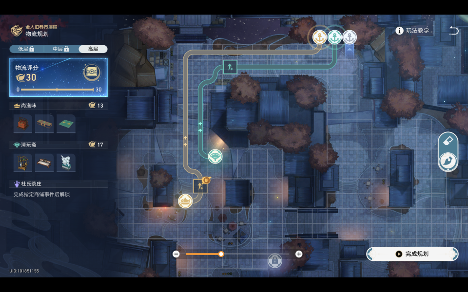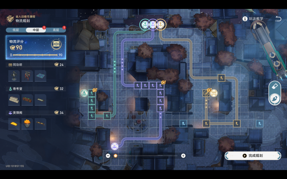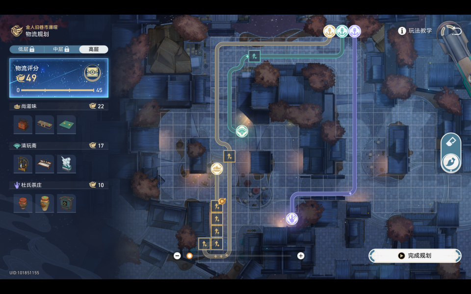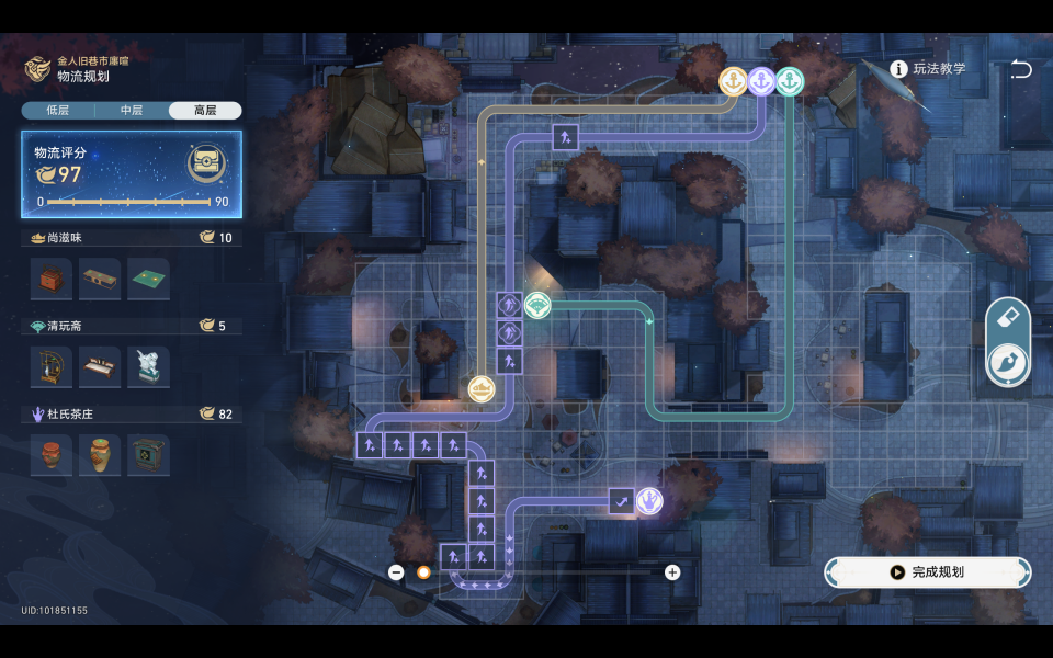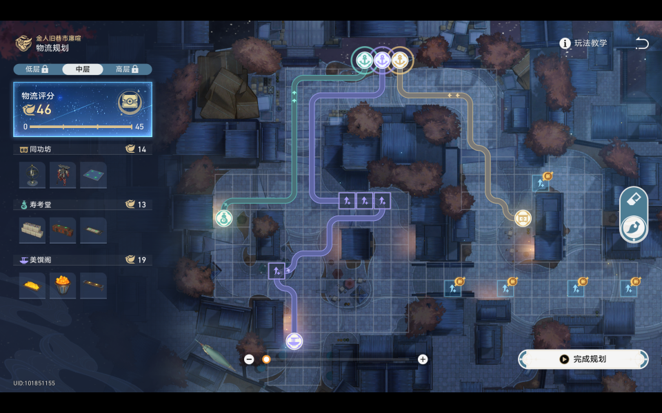 2,之后回到会长处,再次开启物流规划,这次评分升级了,大家按我的规划来即可