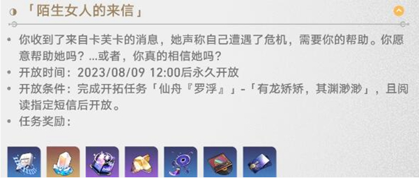 以上就是小编整理带来的《崩坏:星穹铁道》陌生女人的来信任务攻略,更多相关游戏攻略,请关注这里下载站!