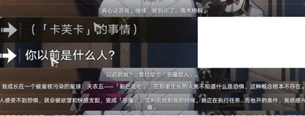 5、战斗结束后继续与卡芙卡玩真心话游戏。