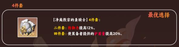 解析:净庭教宗的圣骑士无论是2件套还是4件套都是很好选择,4件套提升护盾量,全体保护能力增加。