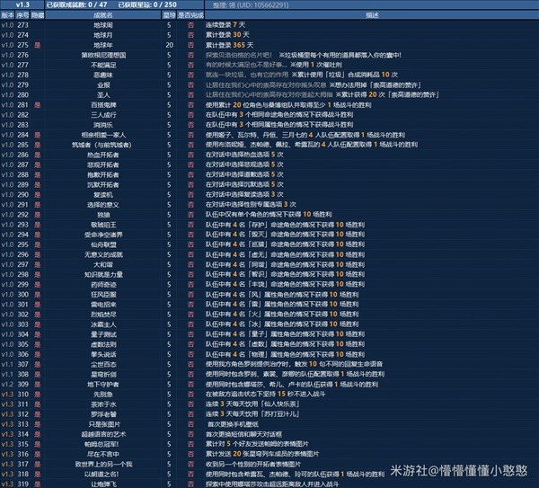 成就数 47, 星琼数 250。