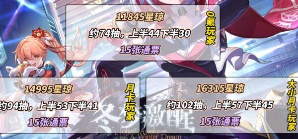 7、总计零氪玩家可以获得11845星琼,大小月卡都买的玩家可以获得16315星琼。