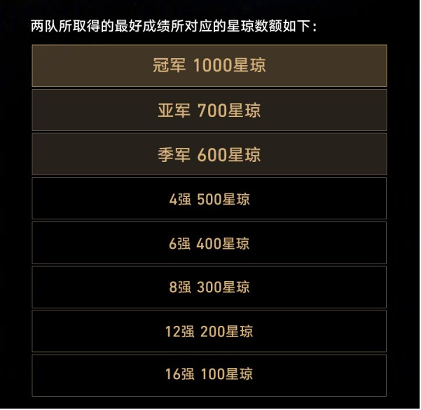 1、本次比赛玩家可获得星琼奖励。