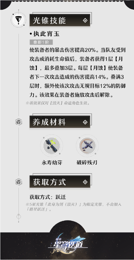 4、该效果在装备者施放攻击后解除,该效果仅对【毁灭】命途角色生效。