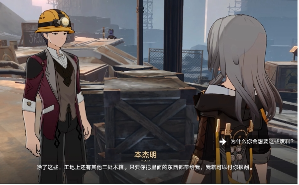 2、调查附近的四个木箱子,并且会触发与本杰明的对话,他可以收取这些废料。