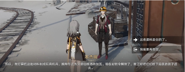 5、前往桥的另一边继续与本杰明进行对话,然后把废料全部给他即可。