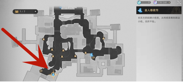1、玩家首先来到仙舟罗浮金人巷左下方传送点。