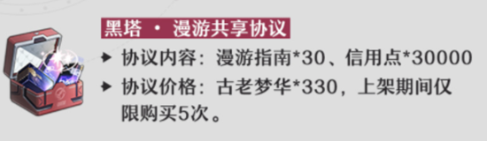 2、协议价格:需要330个古老梦华,上架期间只能购买5次。