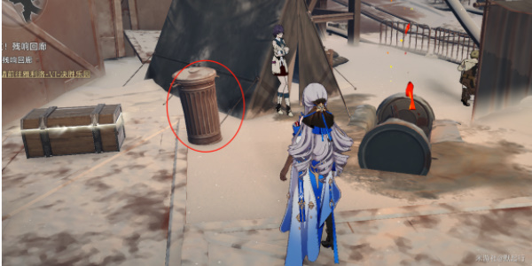 2、我们来到下图所示的位置后可以看到这里有个垃圾桶,我们与垃圾桶进行互动选择”整个搬走“后即可达成成就【冰级淋】。
