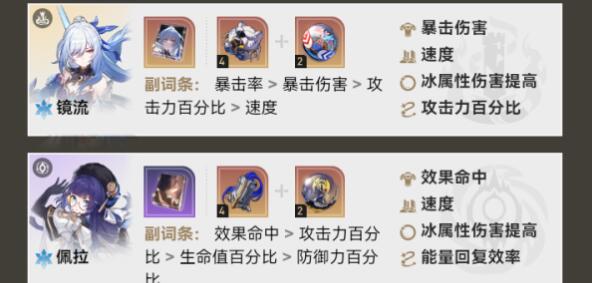 全员0命完全体,镜流配符玄有效缓减毕业压力,暴击率40就溢出,佩拉作为减抗副c,效果命中一定过66,玲可堆一点效果抵抗吃龙骨套加成,同时提高治疗量并避免被控增加应急奶机动性。佩拉命座提供减冰抗进一步提升镜流输出 ;