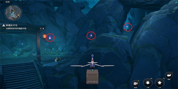 首先先向上飞,到达之后去南边的山上即可找到4个;