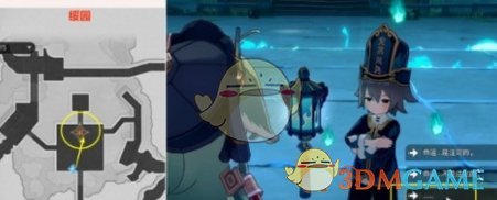 1、玩家获取任务后需要前往绥园下图标记的位置和浮烟对话。