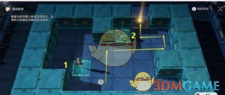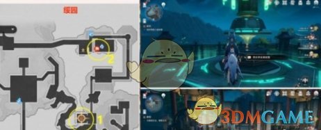 5、完成前两次解密后需要前往1和2的位置,对话后继续按图中顺序解谜。