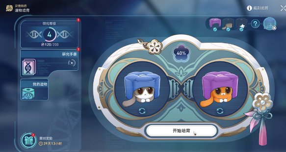1、完成【桂花糕猫】对话,和【生命烘焙箱】交互,切换培育目标【黑塔喵】,按照提示培育两种基础特征【桂花糕猫】;