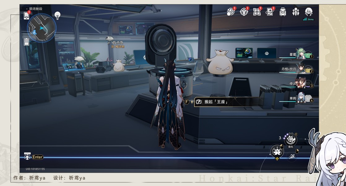 3,等待对话结束,会自动传送到禁闭舱段2层,搬起面前的“王座”。