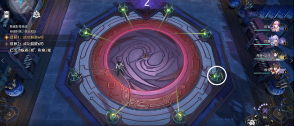 1、躲避射线挑战活动关卡中周围有八个发射机关,我们只需要躲避发射的光线即可;