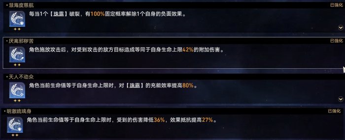 3、当拿到“【露珠】破裂时回复生命值”的祝福时,我们的每一次行动(包括插入终结技)都能为全队回复血量,因此实战中可以试着捏着大招,等关键时刻用来开大触发该祝福进行急救。
