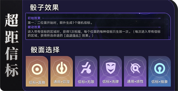 2、骰面选择:【[信标·置换]、[通用·弥漫]、[信标·无限]、[信标·洗牌]、[通用·感性]、[信标·抽象]】。