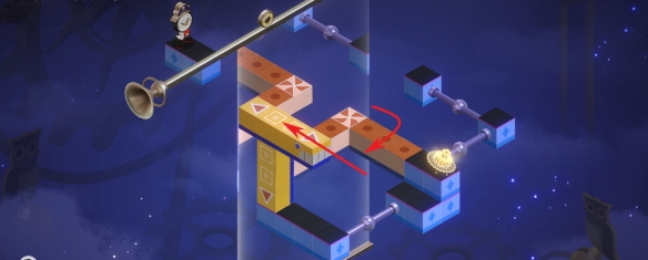 3、之后把黄色竖块向上移,再把镜子向左移(如图)