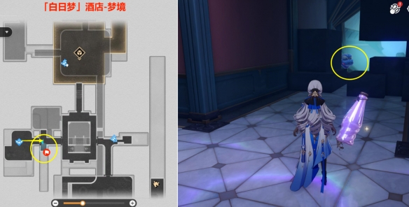 来到【「白日梦」酒店-梦境】下图位置,打了墙洞里面的蓝色气球后,即可获得该成就