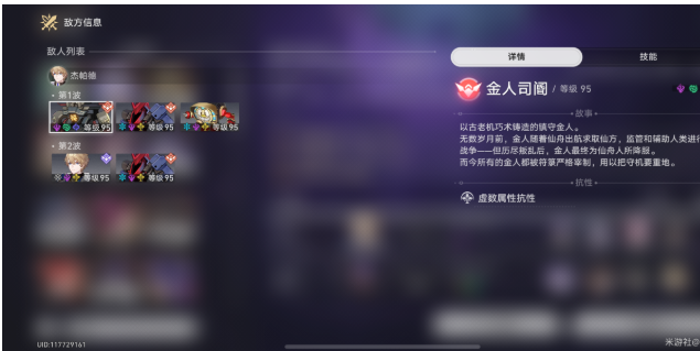 真理的话金人的虚数抗性+锁弱点会有些难受,最好携带银狼挂虚数弱点在金人第一轮动完后破韧,此时真理两根粉笔足以击杀。