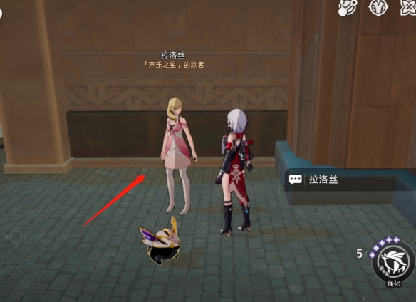 4、最后来到图中位置,和拉洛丝对话就可以开启钟表把戏任务了。