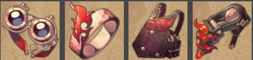 套装部件:火匠的黑耀目镜、火匠的御火戒指、火匠的阻燃围裙、火匠的合金义肢