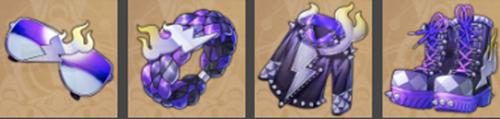 套装部件:乐队的偏光墨镜、乐队的巡演手绳、乐队的钉刺皮衣、乐队的铆钉短靴