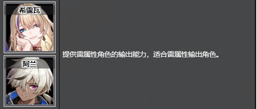 提供雷属性角色的输出能力,适合雷属性输出角色。