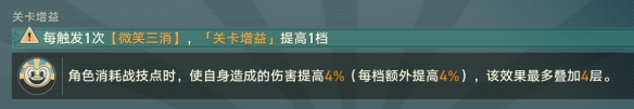 关卡增益是消耗战技点获得增伤,所以开局先让饮月和银枝使用战技把增伤叠满。