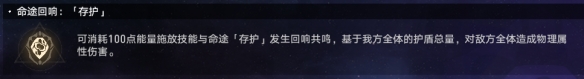 存护流玩法主要依赖护盾,叠加的护盾越厚,队伍整体的伤害越高,因此队伍要多带能提供护盾的角色,甚至可以不需要主C,伤害靠命途回响星神代打。