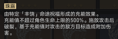 丰饶流玩法主要依靠其祝福中的【露珠】倍率来打输出,而【露珠】倍率又与治疗量有关,因此队伍中建议多带具有生命值回复能力的角色。