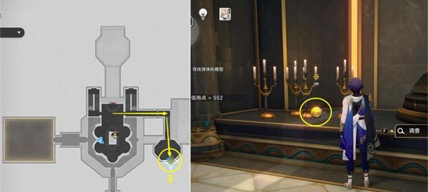 9. 进入城市沙盘地图后,前往前方的拼图区域,首先需要搜集散落的3个拼图碎片,前两个碎片的位置已在下图中标记。