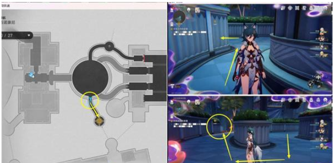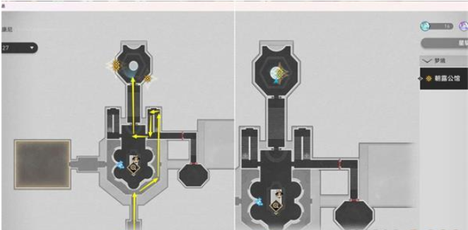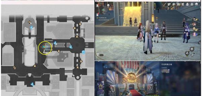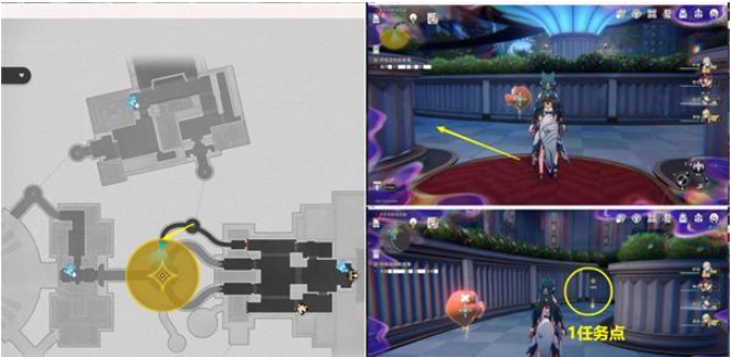 1.上图3任务点过完剧情后,会自动传送到下图位置,和三月七对话后进入副本,记得组好队。