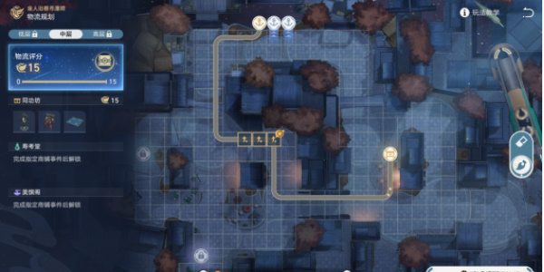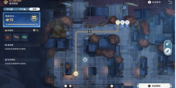 1、低层物流规划路线图,低层的难度并不高,玩家只需要达到规定的要求即可。