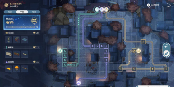2、中层的难度稍微有点高,玩家需要认真规划,尽量保持最大利益;中层物流路线规划如图所示。