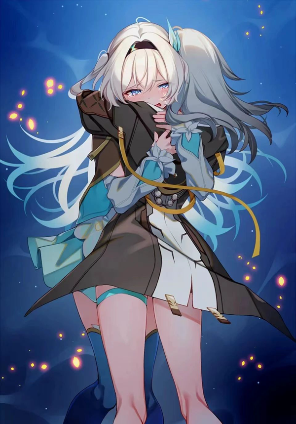 实大家看到这张图是不是觉得很熟悉,因为图上的一些要素我们之前都已经见过了。首先是官方pv里面放出的形象(图一图二),除了双剑其他都具备了。至于双剑就是之前内鬼曝光的第五形态(图三),在流萤完成变身之后化作萨姆,手持双剑。所以现在看到的战斗形态就是两者的结合,看起来才会那么熟悉。