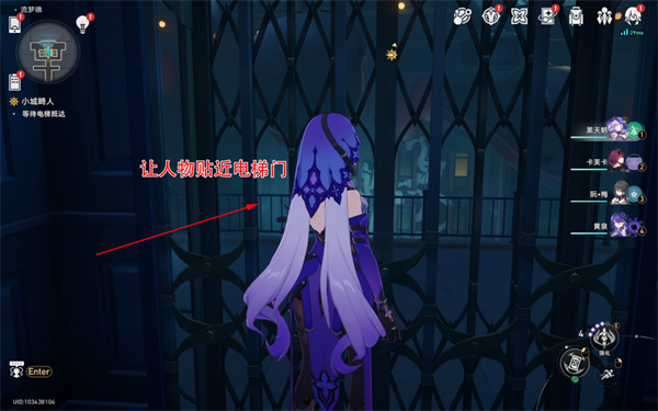 2、接着需要注意让任务贴近电梯大门。