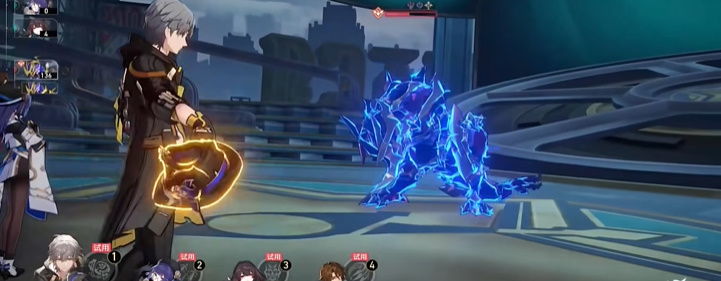 2、首先将四个角色能量打满,不熟悉击破玩法的玩家,可以先开同谐主角的大招加成击破特攻击,再开加拉赫的大招,加拉赫击破易伤,然后再配套大招并增加雪衣的大招。